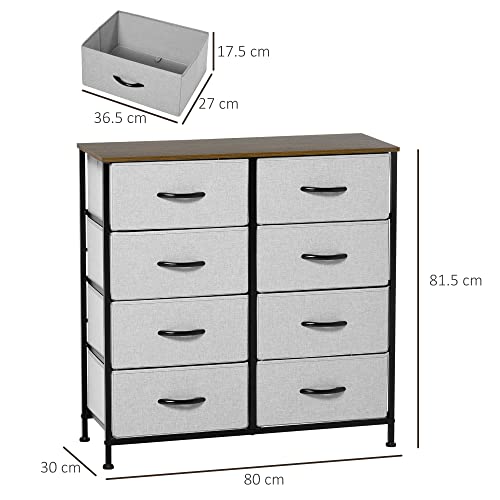 HOMCOM Cassettiera 8 Cassetti in Stile Industriale, Cassettiera per Camera da Letto con Cassetti in Tessuto Rimovibili, Legno e Acciaio, 80x30x81.5cm