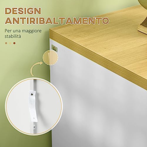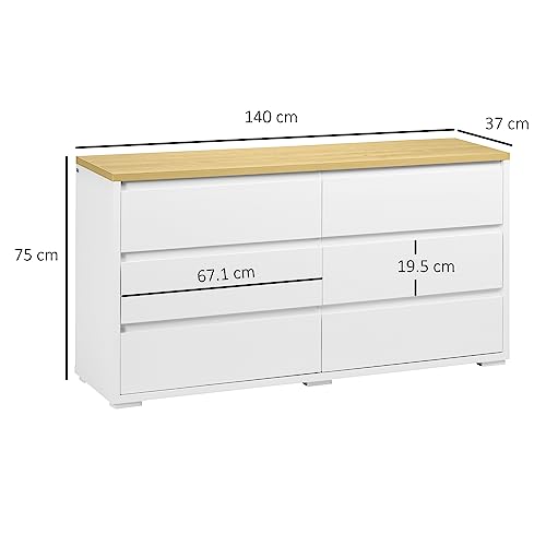 HOMCOM Cassettiera a 6 Cassetti in Truciolato Bianco per Camera da Letto, Studio e Soggiorno, 140x37x75cm