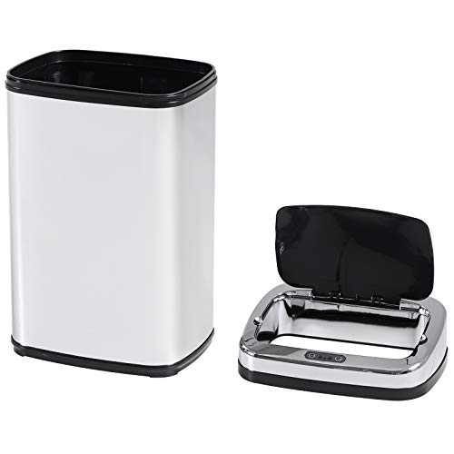 HOMCOM Cestino dei rifiuti in acciaio inox con sensore automatico Pattumiera con sensore a infrarossi 50L