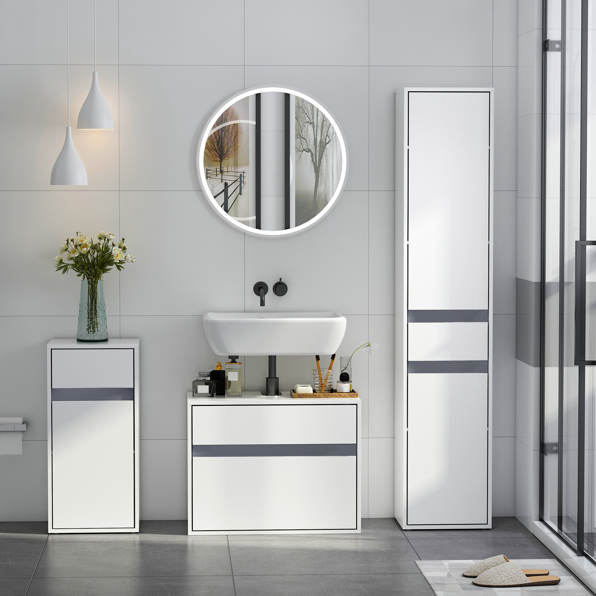 Porta un'atmosfera ordinata nei tuoi spazi con questa colonna bagno HOMCOM in stile minimal e dotata di 2 grandi armadietti e di un cassetto centrale a scomparsa per regalare un look ordinato. All'interno degli armadietti è presente un ripiano regolabile per riporre prodotti da bagno di tante dimensioni diverse. Realizzato con pannelli di truciolato, l'armadietto si rivela solido e durevole per garantirti un uso affidabile. La struttura è rifinita con delle pratiche cinghie sul retro.