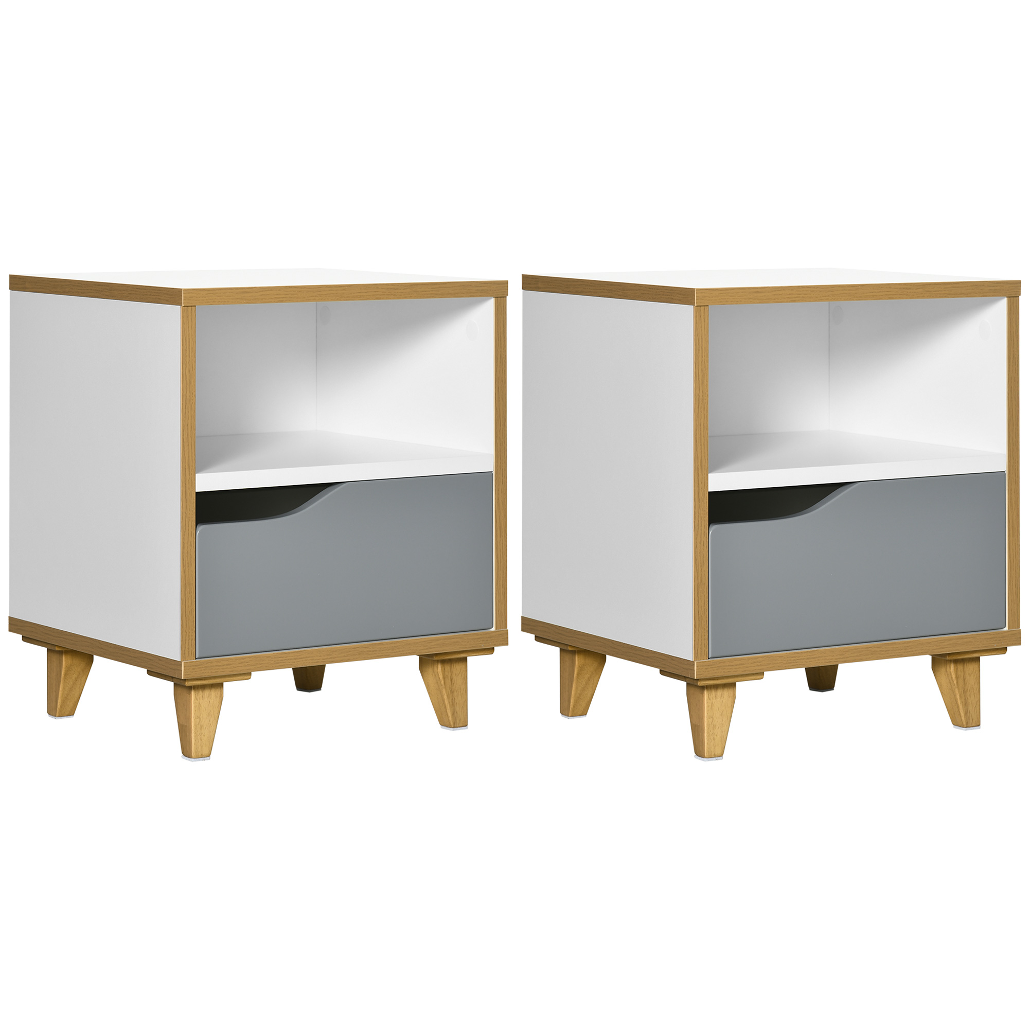 Tieni tutto in ordine e a portata di mano ogni volta che sei a letto con questo set di 2 comodini HOMCOM. Il design semplice e lineare li rende perfetti da abbinare a ogni stile di arredamento e puoi usarli anche come tavolini da divano. Robusti e stabili grazie alla struttura in MDF, ti offrono tutto lo spazio di cui hai bisogno grazie a un vano aperto e a un pratico cassetto. Non lasciarteli sfuggire!