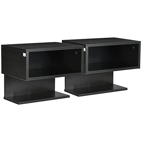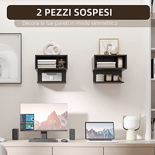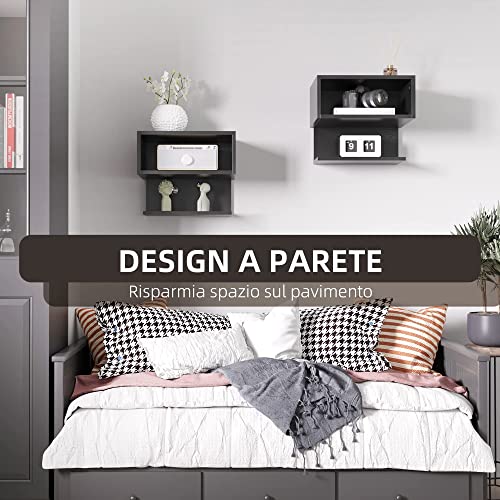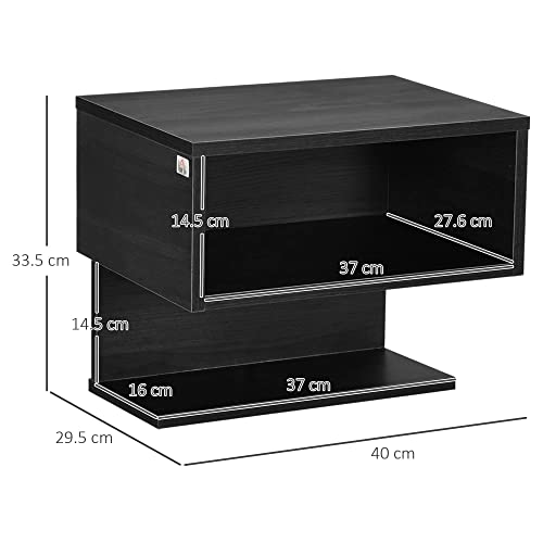 HOMCOM Set Comodini Vintage, Scaffale a Parete in MDF con Ripiano Aperto e Piano d'Appoggio per Soggiorno, Cucina e Camera da Letto, 40x29.5x33.5 cm, Nero