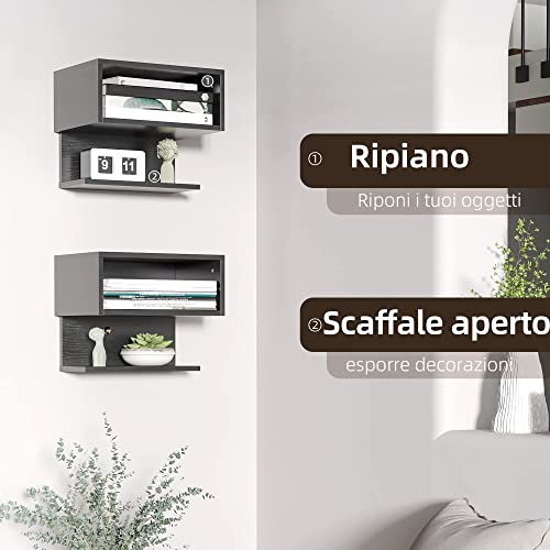 AMPIO SPAZIO: Sul ripiano aperto dello scaffale a parete è possibile collocare piccoli soprammobili per decorare la casa, mentre puoi riporre gli oggetti di uso quotidiano nel ripiano aperto per tenerli portata di mano.