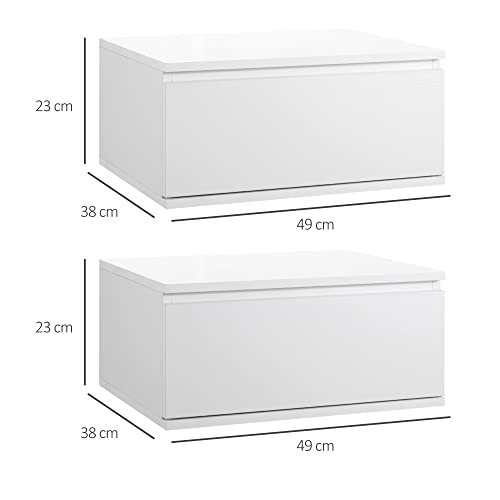 HOMCOM Set 2 pz Comodino Moderno con Cassetto e Design Sospeso per Camera da Letto e Soggiorno, in Truciolato e MDF, 49x38x23cm, Bianco