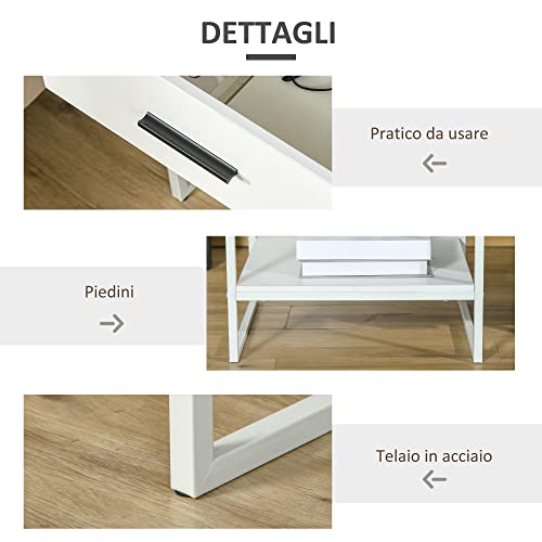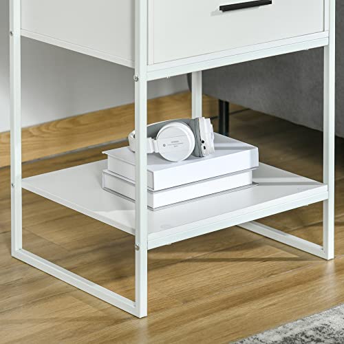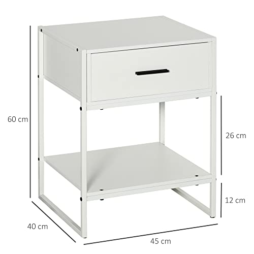 Homcom Comodino Moderno con Cassetto e Ripiano Aperto, Comodino Camera da Letto Piccolo in Truciolato e Acciaio, 45x40x60cm, Bianco