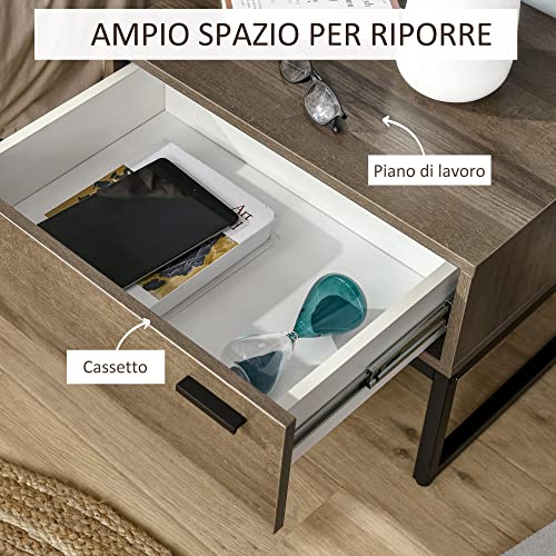 HOMCOM Comodino Moderno Stile Industriale con Cassetto, Tavolino da Salotto in Legno e Acciaio, 53x41.5x37cm, Grigio