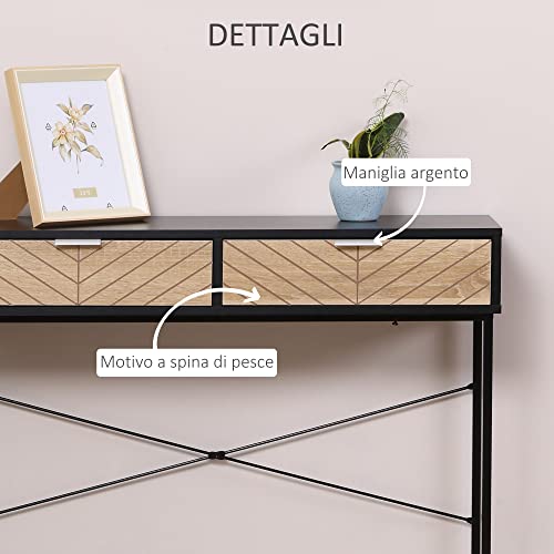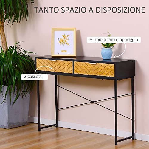HOMCOM Consolle Moderna con 2 Cassetti, Tavolo per Ingresso in Metallo con Struttura Incrociata, Tavolino per Soggiorno, Nero