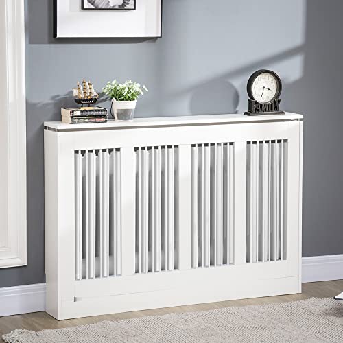 HOMCOM Copritermosifone a Doghe Moderno ed Elegante per la Casa, in MDF e Acciaio, 120x18x84cm, Bianco