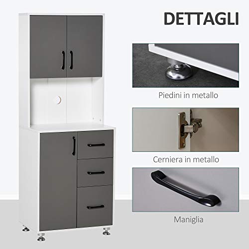 Homcom Credenza Alta da Cucina con Design Moderno, Madia Mobile Buffet in Legno Bianco e Grigio, 60x40x160cm