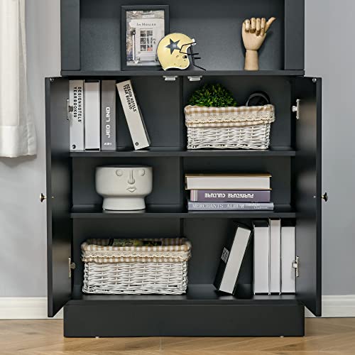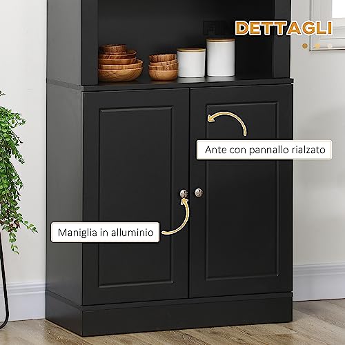 Homcom Credenza Cucina in Legno con Ripiani e Armadietto 2 Ante con Mensole Regolabili, per Salotto e Soggiorno, Nero