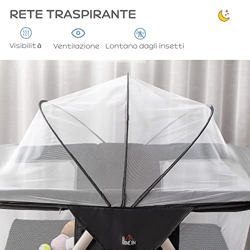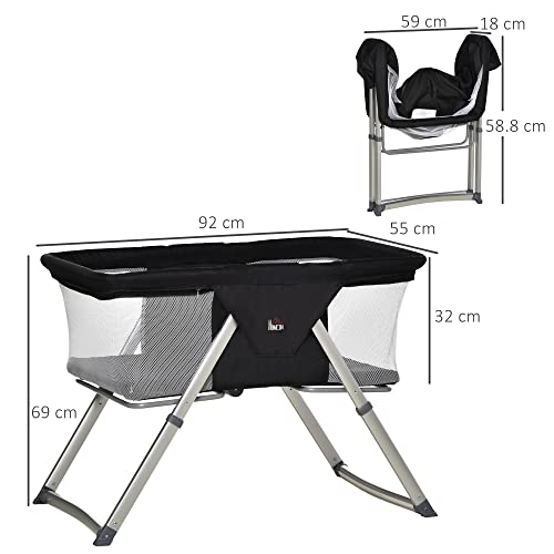HOMCOM Culla da Campeggio 2 in 1 con Lettino a Dondolo, Culla Pieghevole con Materassino e Zanzariera Età 0-6 Mesi, 59x55x67/69cm, Nero