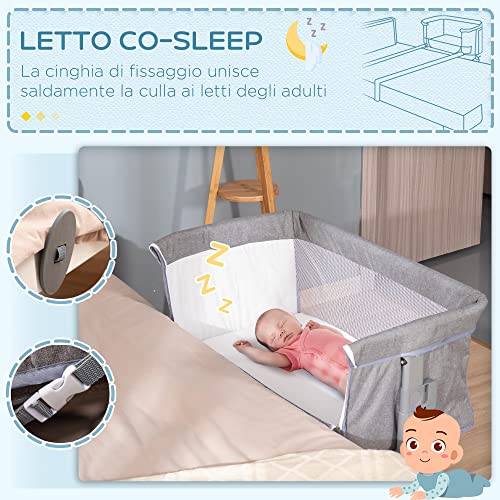 HOMCOM Culla Co-sleeping Pieghevole con Altezza Regolabile per Neonati con Tessuto a Rete e Borsa di Trasporto, 86x50x83cm
