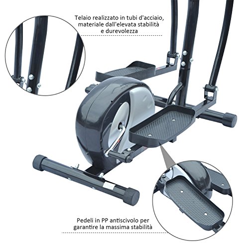 Homcom - Cyclette Ellittica Magnetica Professionale in Acciaio con Display, 111 x 58 x 150cm Nero