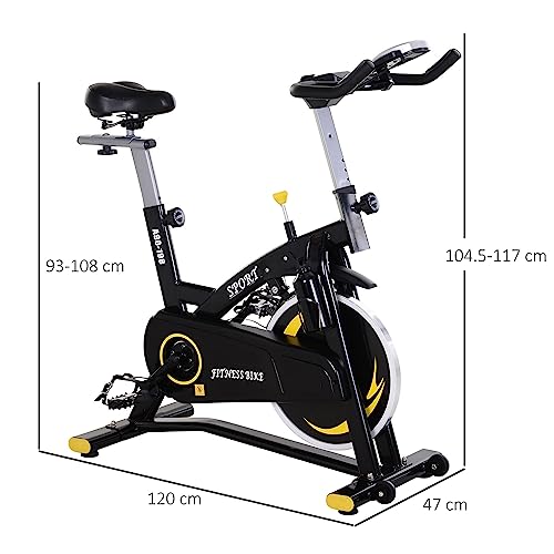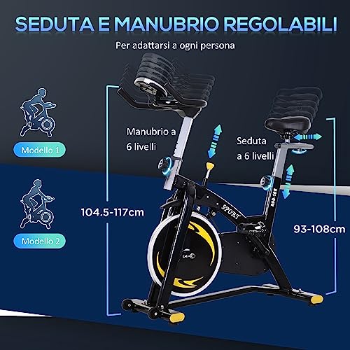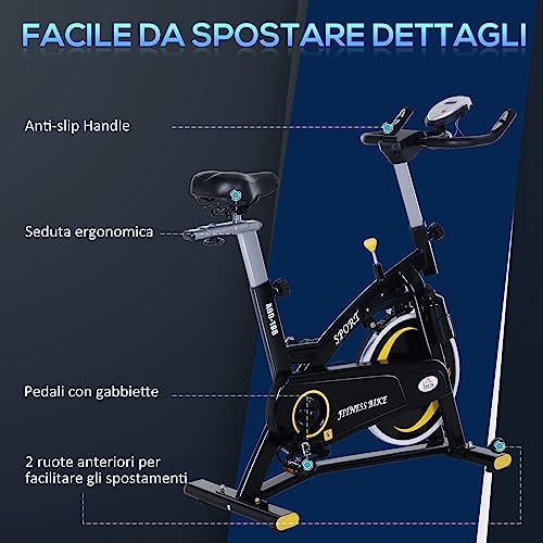 HOMCOM Cyclette Professionale, Cyclette da Camera Regolabile con Schermo LCD e Volano 10kg per Casa o Palestra, Nera e Gialla