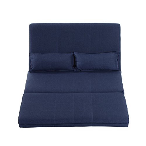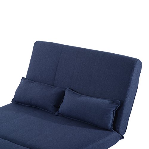 Homcom - Divano Letto Matrimoniale in Acciaio e Tessuto di Poliestere con 2 Cuscini Blu Scuro
