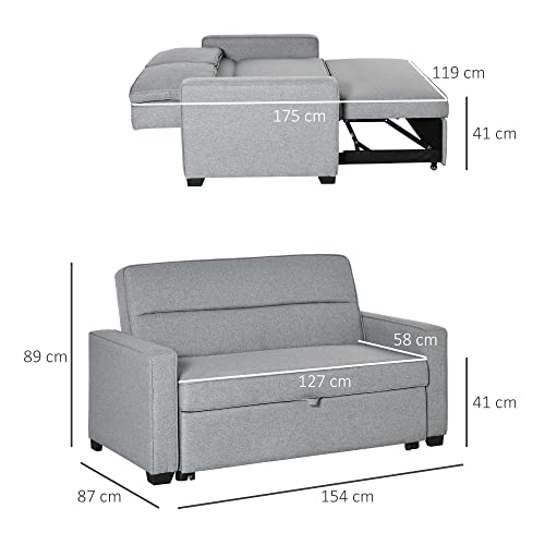 Homcom Divano Letto a 1 Piazza con Rivestimento in Tessuto, Divano 2 Posti con Schienale Reclinabile su 3 Livelli, Grigio