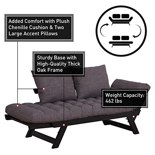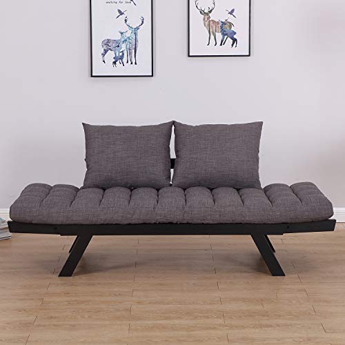DESIGN MODERNO ED ELEGANTE: Il design moderno e minimal di questo divano letto ti farà innamorare. Con cuscini imbottiti, rifiniture in legno di rovere nero, e due larghi guanciali comodissimi, porterà un tocco di stile all'arredamento di casa tua.