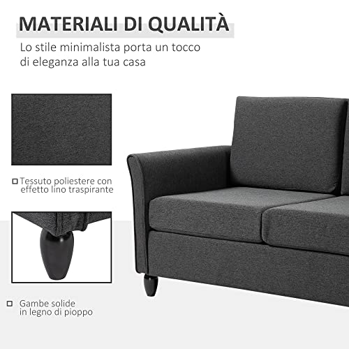 Homcom Divano a 2 Posti a Seduta Ampia con Cuscini Rimovibili da Salotto in Tessuto Effetto Lino e Gommapiuma, 141x70x78 cm, Grigio scuro e Nero