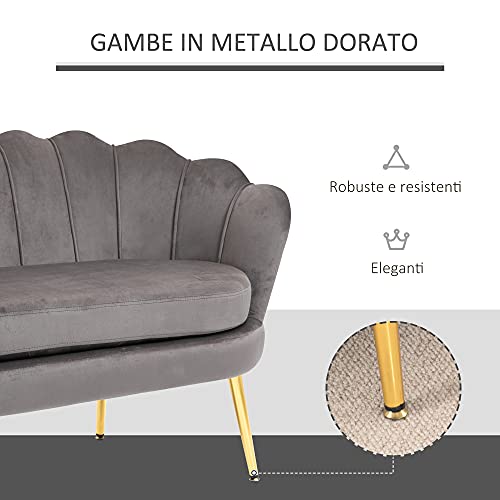 Homcom Divano 2 Posti in Velluto e Gambe in Metallo, Arredamento Vintage Casa e Ufficio, 133x63x75cm Grigio