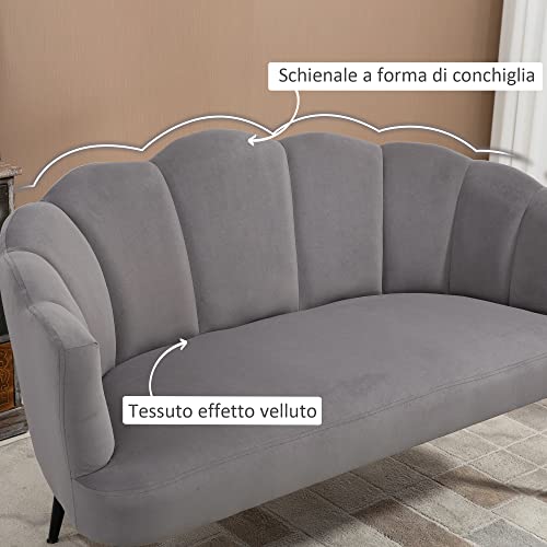 HOMCOM Divano 2 Posti in Velluto con Gambe in Metallo, Divanetto da Salotto con Schienale a Conchiglia, 132x66x80cm, Grigio