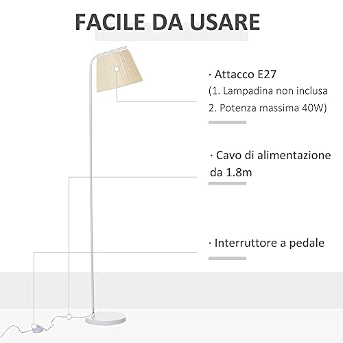 HOMCOM Lampada da Terra con Base Rotonda in Metallo e Tessuto Attacco E27, Interruttore a Pedale, 45x27x165cm Bianco Crema
