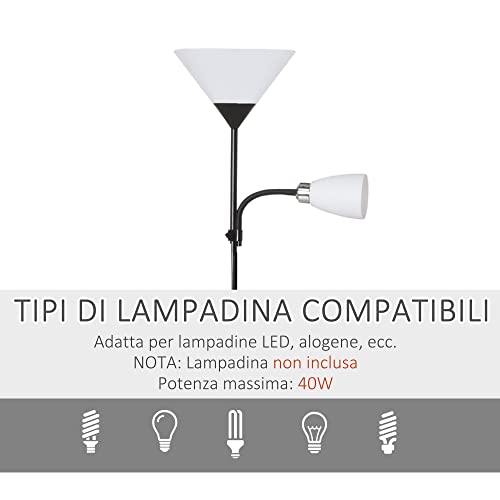 HOMCOM Lampada da Terra Moderna con Luce da Lettura Regolabile, Lampada Piantana con Due Paralumi in Metallo Nero, E27 e E14, 42x24x178cm