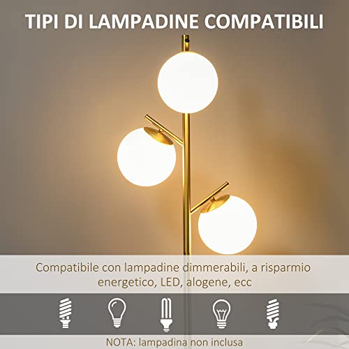 HOMCOM Lampada da Terra Moderna con 3 Punti Luce, Lampada a Piantana in Acciaio e Vetro, Ø27x169cm, Oro