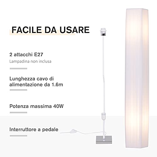 HOMCOM Lampada da Terra Lampada Piantana da Terra Design Moderna Salotto Tessuto 14×14×120cm Bianco