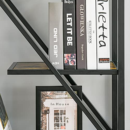 STILE INDUSTRIALE: Questa libreria realizzata con una combinazione di legno effetto rustico e struttura metallica nera si farà notare per la sua eleganza e per l'originale design asimmetrico.