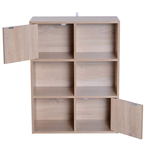 Homcom Libreria Scaffale Mobiletto in Legno con 3 Ripiani 4 Scompartimenti e 2 ante, 61.5x29.5x80cm
