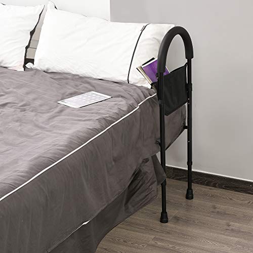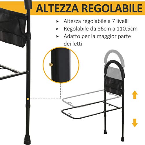 Homcom Maniglia per Alzarsi da Letto 7 Altezze Regolabili 86-110.5cm, Impugnatura Antiscivolo e Tasca Portaoggetti, 72x36cm