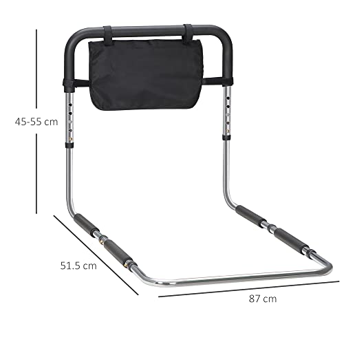 HOMCOM Maniglia per Letto con Altezza Regolabile, Alzaletto in Acciaio con Impugnatura Morbida, Argento