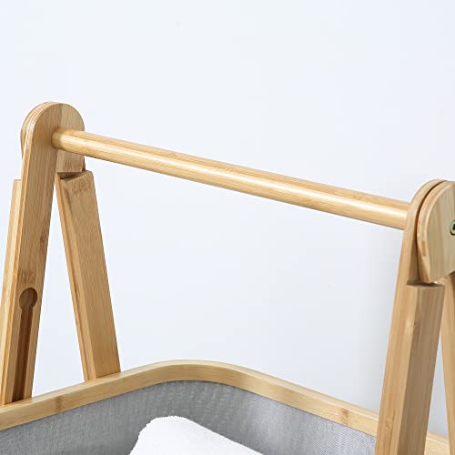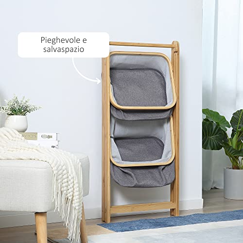 Homcom Mobile Bagno Pieghevole con 2 Cassetti in Tessuto, Scaffalatura Scaffale Basso Salvaspazio a 2 Ripiani in Bambù e Poliestere Grigio, 45x35x98cm