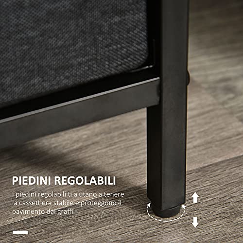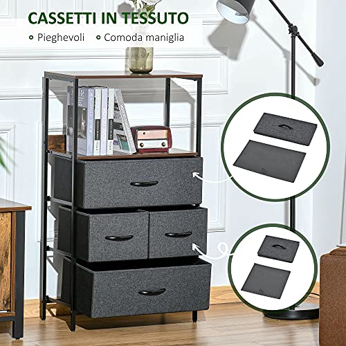 Homcom Mobile Cassettiera Multiuso con 4 Cassetti Pieghevoli in Tessuto, Arredamento Soggiorno e Camera, 58x29x103cm, Grigio Scuro