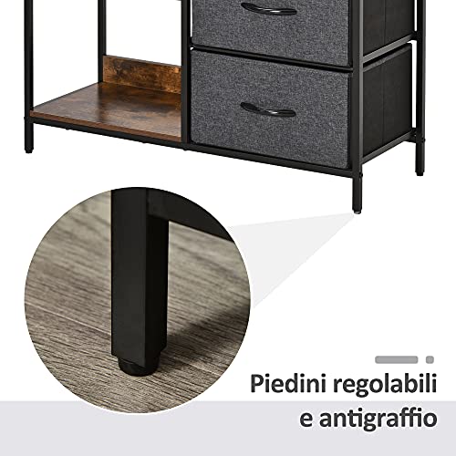 Homcom Mobile Cassettiera Multiuso con 3 Cassetti Pieghevoli in Tessuto, Arredamento Soggiorno e Camera, 80x29x71cm, Grigio Scuro