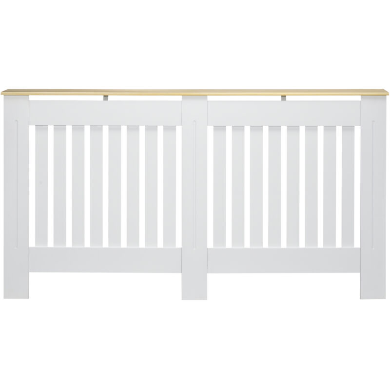 Rendi il tuo calorifero più elegante con il copritermosifone HOMCOM. Realizzato con pannelli in MDF spessi 12mm, il nostro copricalorifero in legno è pensato per durare nel tempo. Il design a doghe favorisce il passaggio del calore e la mensola superiore ti permette di appoggiare ogni tuo oggetto. Il mobile copricalorifero è dotato di sistema antiribaltamento, così puoi fissarlo saldamente al muro ed evitare che cada. Caratteristiche - Porta un tocco di eleganza in ogni stanza - Struttura a doghe per favorire il passaggio del calore - Evita che bimbi e animali tocchino il calorifero - Mensola superiore per appoggiare soprammobili, libri, ecc. - Realizzato in solido MDF e legno truciolare - Sistema antiribaltamento - Ideale per casa, ufficio, ecc. - Montaggio richiesto Dati tecnici - Colore: Bianco, Quercia - Materiale: MDF, Legno truciolare - Dimensioni generali: 152L x 19P x 83Acm - Dimensioni interne: 144L x 16.8P x 80.8Acm - Altezza da terra: 10.5cm