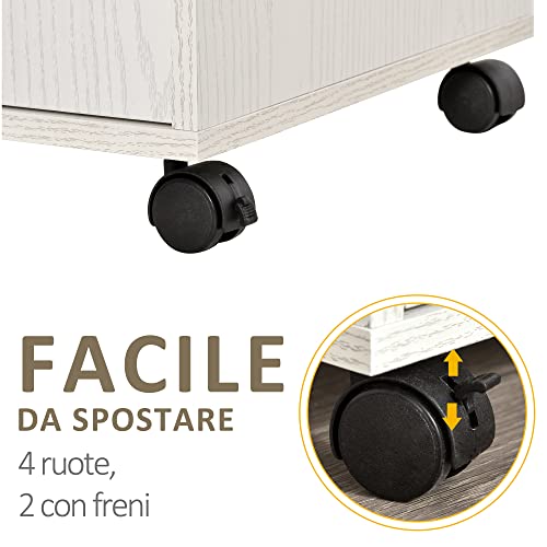 FACILE DA SPOSTARE: Le 4 ruote, di cui 2 con freno, ti permettono di spostare comodamente questo mobiletto multiuso in ogni ambiente della tua casa.