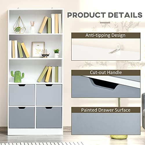 Homcom Mobile Libreria con 4 Cassetti e 3 Ripiani Aperti per Casa e Ufficio, in MDF e Truciolato, 76x30x173cm, Bianco e Grigio