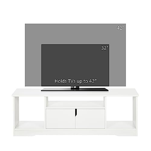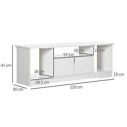 Homcom Mobile Porta TV Fino a 42'' con Armadietto e Ripiani Aperti, Mobiletto TV per Salotto e Soggiorno in Legno, 120x30x41cm, Bianco