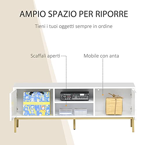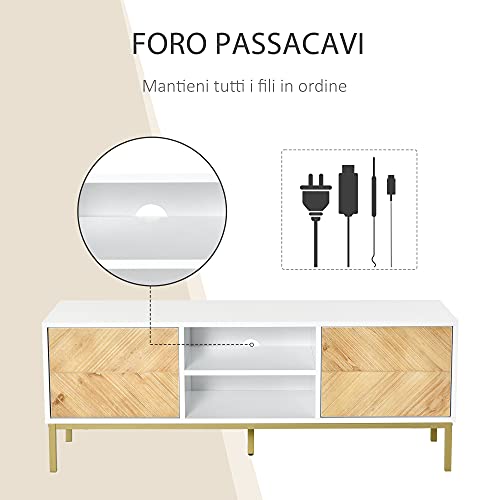 Homcom Mobile Porta TV Moderno con 2 Armadietti e Vano Centrale, Mobiletto Basso per TV Fino 60'', Bianco e Color Legno, 120x40x44.6cm