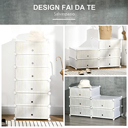 Homcom Mobile Scarpiera Modulare Salvaspazio, 6 Cubi 45x35x17cm in Plastica PP e Acciaio, 49x36.5x108cm, Bianco