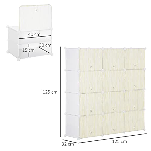 HOMCOM Mobile Scarpiera Modulare Salvaspazio per Interni, Portascarpe con Fori di Ventilazione, 12 Cubi in Plastica PP e Acciaio, 125x32x125cm, Bianco