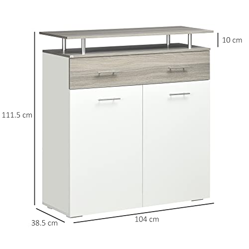 HOMCOM Mobile da Soggiorno Cucina e Ingresso in Truciolato, Mobiletto Multiuso con Ripiani Regolabili Interni, Cassetto e 2 Ripiani Aperti, 104x38.5x111.5 cm, Bianco