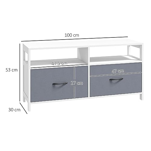 HOMCOM Mobile TV 45" max in MDF e Tessuto non Tessuto con 2 Cassetti Rimovibili e 2 Ripiani, 100x30x53 cm, Bianco e Grigio