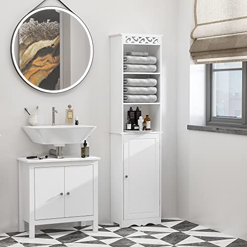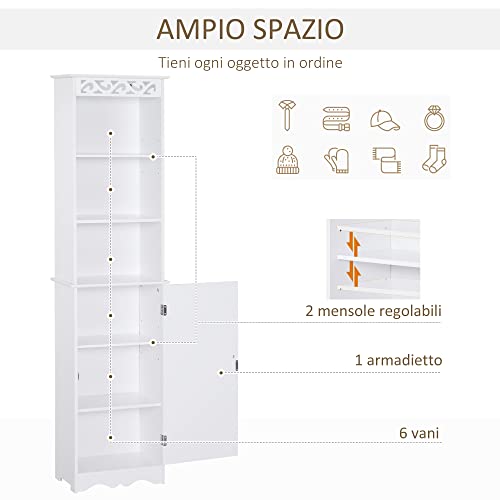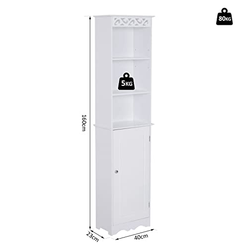 Homcom Mobiletto del Bagno a Torre 3 Ripiani Regolabili su 3 Livelli e 1 Ampio Armadietto Inferiore Manopole sull'Anta MDF Bianco 40x23x160cm