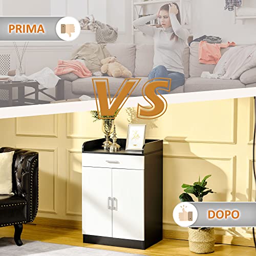 Homcom Mobiletto con Cassetto e Ripiano Regolabile per Cucina, Soggiorno e Anticamera, in MDF, 60x40x90cm, Bianco e Nero