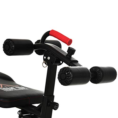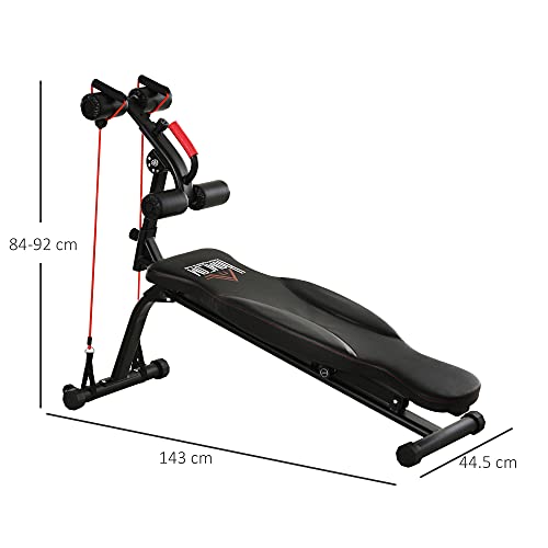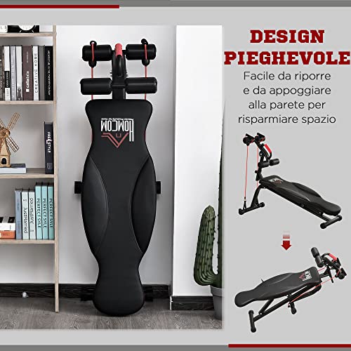 HOMCOM Panca per Addominali Pieghevole per Allenarsi a Casa, Telaio in Acciaio e Imbottitura Nera e Rossa 44.5x143x84-92cm