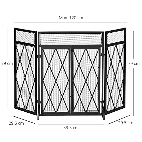 HOMCOM Parascintille per Camino in Metallo con 3 Pannelli Pieghevoli e 2 Porte, 120x11.5x79cm, Nero