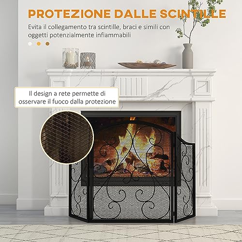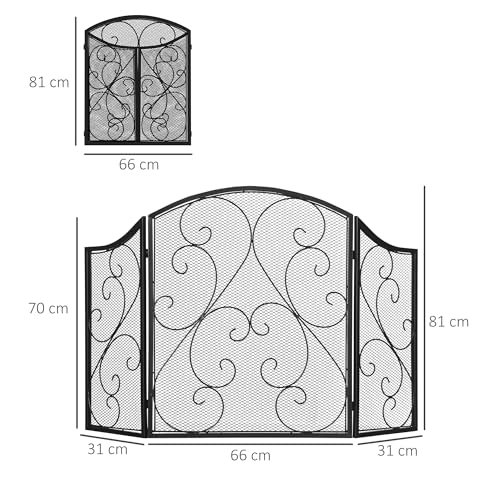 HOMCOM Parascintille Camino a 3 Pannelli in Metallo con Design Pieghevole, 66x31x81 cm, Nero