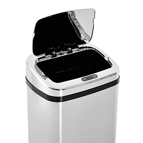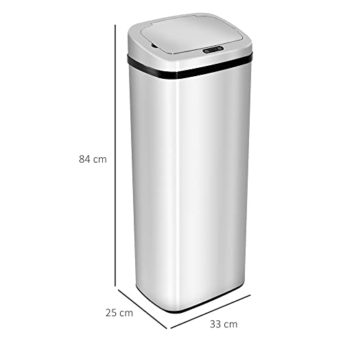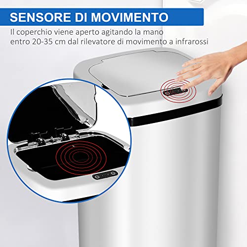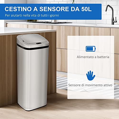 HOMCOM Pattumiera ad Apertura Automatica con Sensore a Infrarossi, in Acciaio Inox, 50L, Colore: Argento